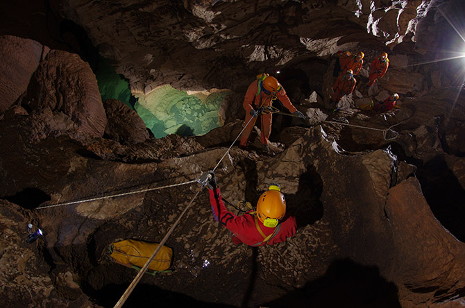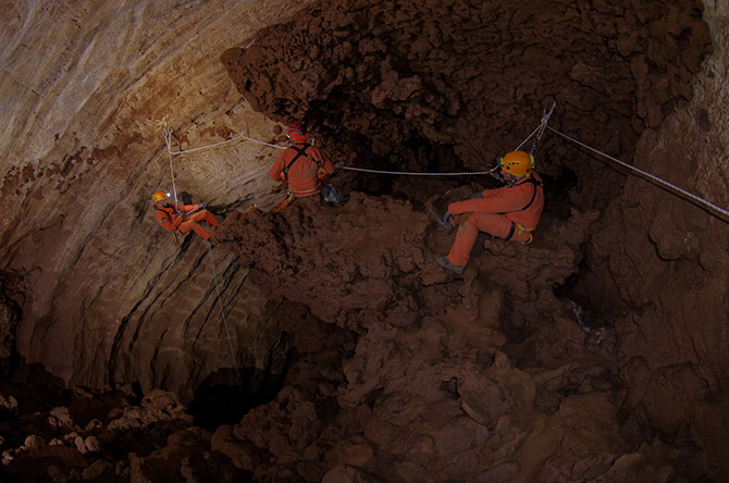 ESA astronauts practice "cavewalking"; image courtesy ESA-V. Corbu.