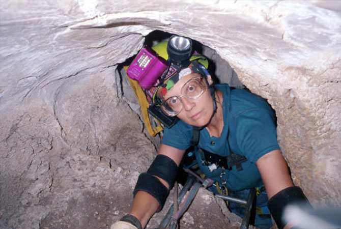 Penelope Boston caving, image courtesy of V. Hildreth-Werker, from "Extraterrestrial Caves: Science, Habitat, Resources," NIAC Phase I Study Final Report, 2001.