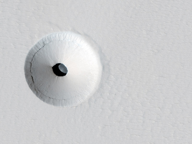 Looking down through a "skylight" on Mars; image via NASA/JPL/University of Arizona