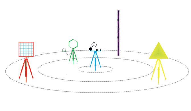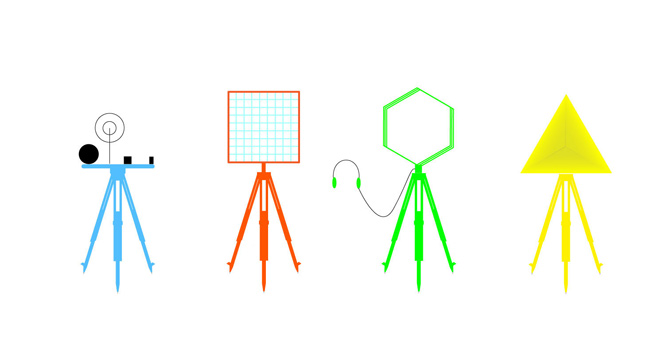 To create Venue’s media rig, we customized a set of standard surveying tripods. Atop these we’ve mounted an array of devices, from the practical to the poetic, most of which were created for Venue by Chris Woebken, an acclaimed interaction designer and 2011 TED Fellow.