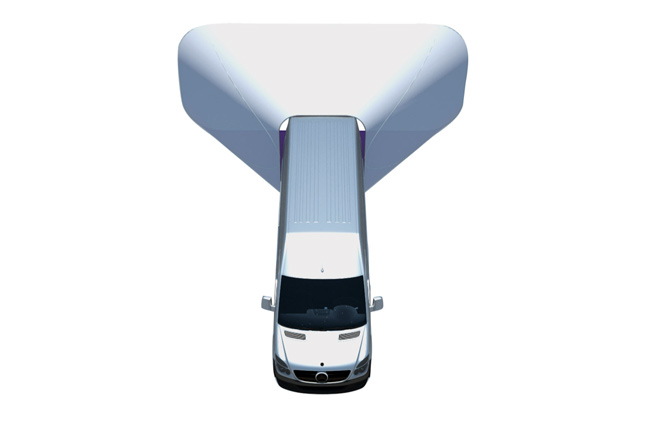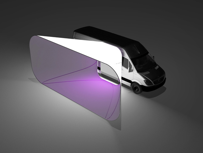 An earlier, vehicle-based concept for Venue was designed by INABA, run by architect Jeffrey Inaba. Artist Joe Alterio also provided visual inspiration with his speculative illustration of the Venue media rig.