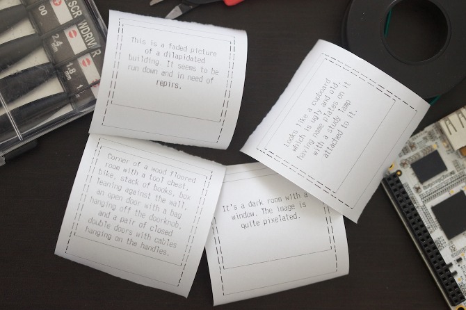 We also saved some room on the right to bring along a guest device or instrument. We've borrowed Matt Richardson's Descriptive Camera, for example, which is like a Polaroid, except that, instead of printing out a picture, it prints a textual description of the scene. You can watch a demonstration below.