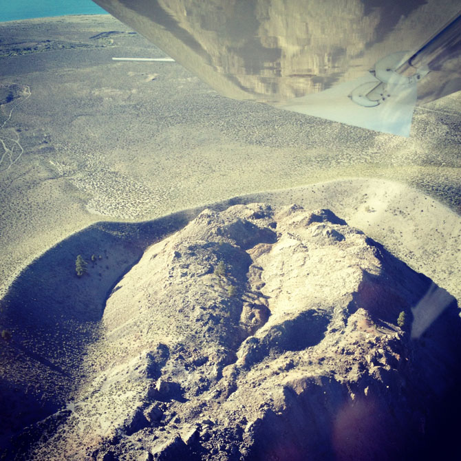 Michael did all of the heavy lifting—avoiding turbulence, "crabbing" the plane into the wind to escape imminent misdirection, and circling us over geological features, such as the exquisite Panum Crater—